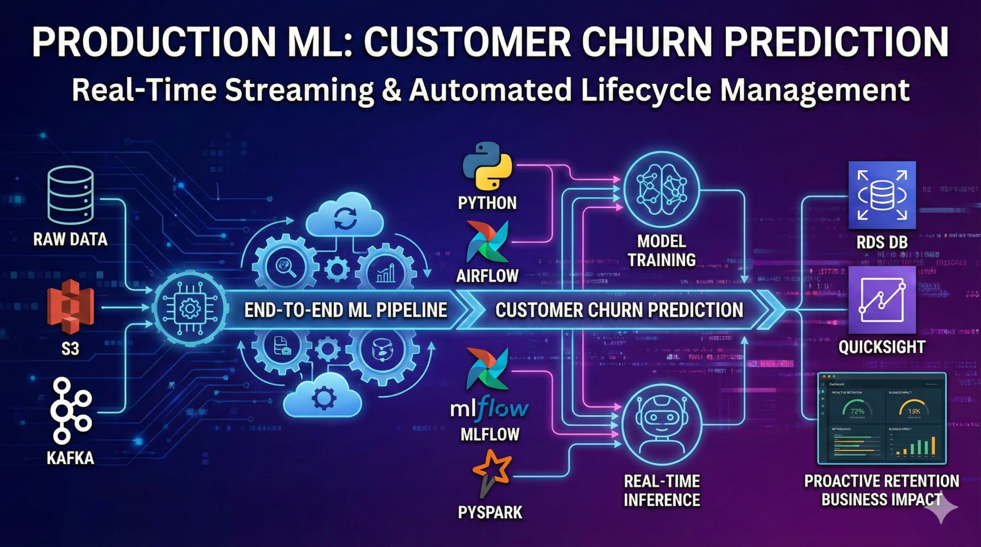 - Architected a production-ready ML pipeline for Customer Churn Prediction, integrating Kafka for real-time streaming, Airflow for orchestration, and MLflow for tracking.